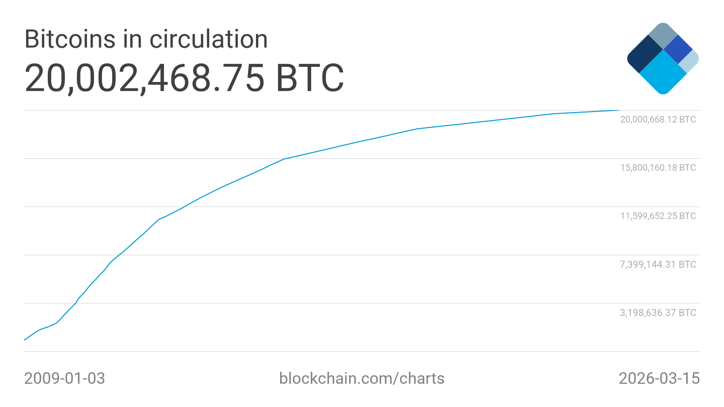 Esse número representa mais de 95% de todo o supply que existirá, já que o protocolo limita a emissão total a 21 milhões de unidades.