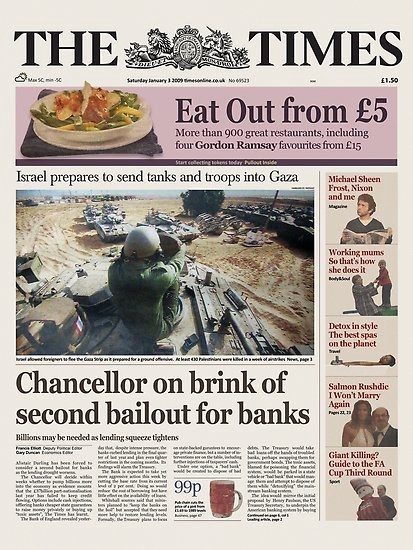“The Times 03/Jan/2009 Chancellor on brink of second bailout for banks”